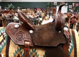 Ince Leaf Boarder and Fancy Waffle with Brown Dyed Edges, Background, and Antiqued on Swell, Housings, Skirts, and Binder