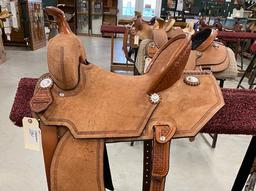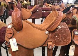 These are examples of barrel saddles we have built in the past. You can use these photos as examples when you order your custom-built saddle or we can come up with a design all your own.